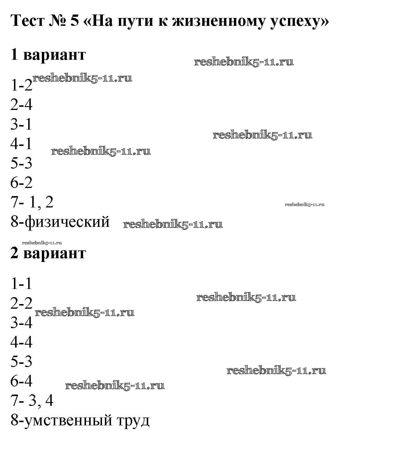 Решебник №1 / тест / тест №5. на пути к жизненному успеху