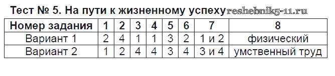 Решебник №2 / тест / тест №5. на пути к жизненному успеху