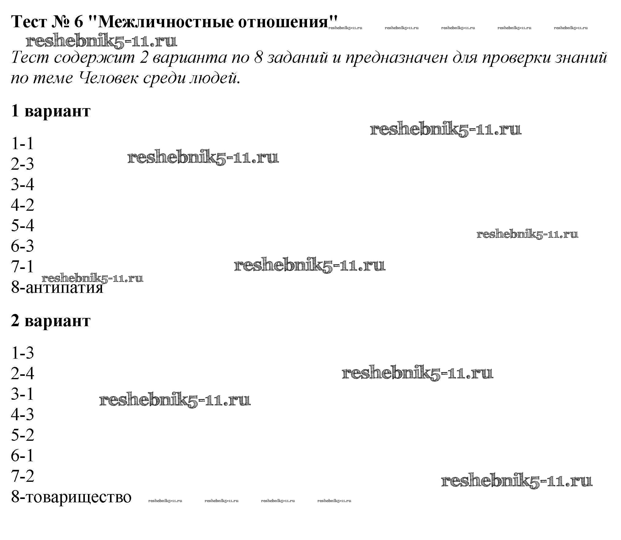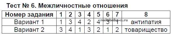 Готовая домашняя работа с ответами по Обществознанию за 6 класс Коваль Тесты УМК Экзамен 2016 ФГОС - Тесты Тест №6. Межличностные отношения