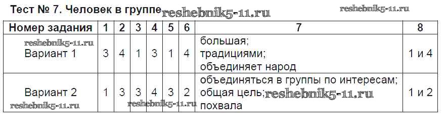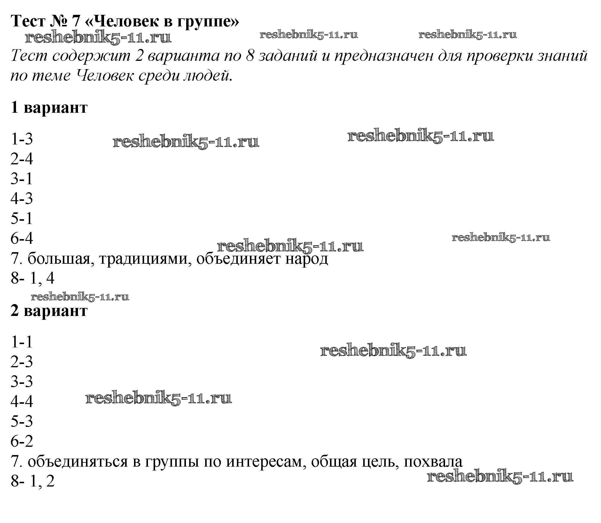 Готовая домашняя работа с ответами по Обществознанию за 6 класс Коваль Тесты УМК Экзамен 2016 ФГОС - Тесты Тест №7. Человек в группе