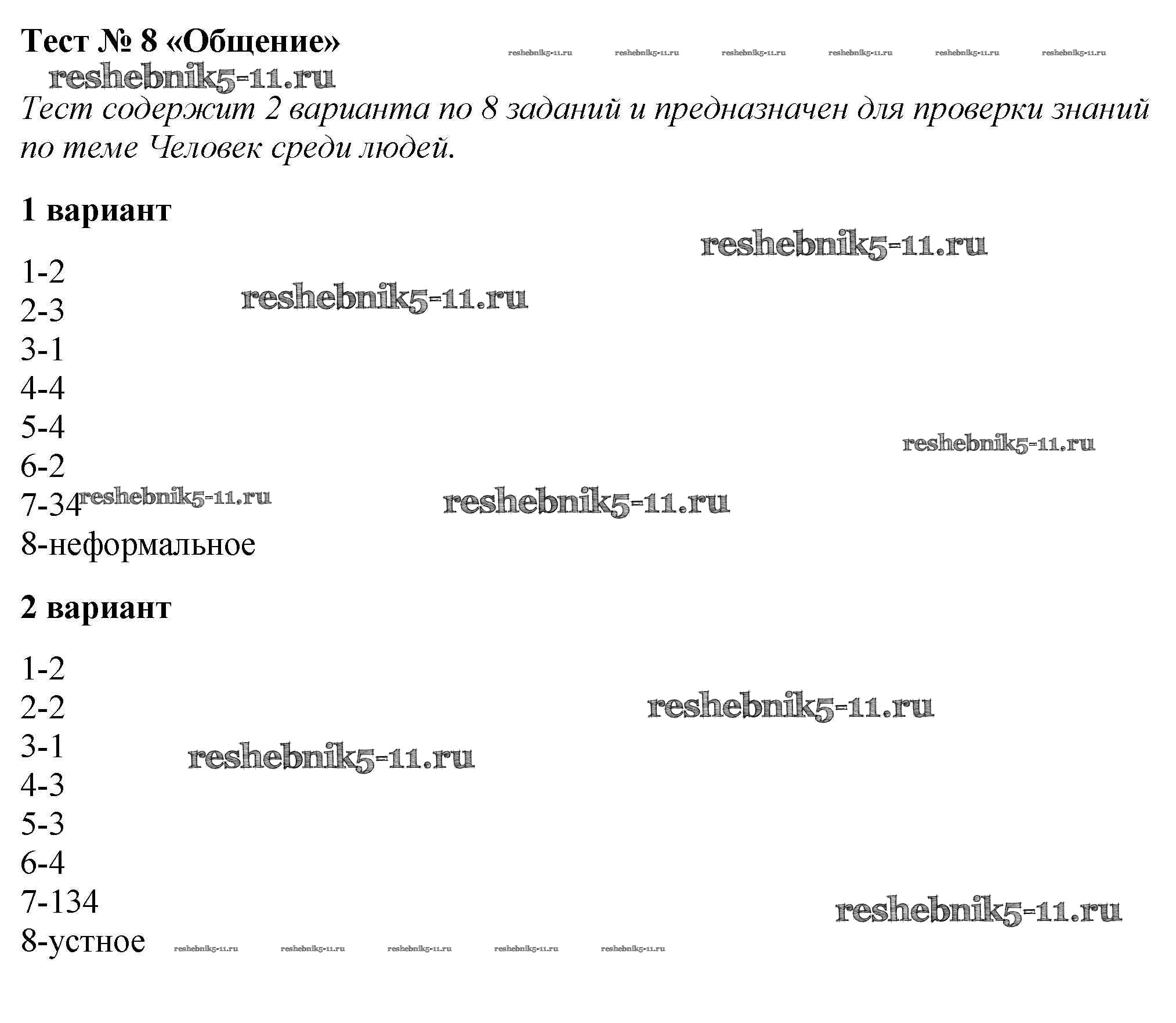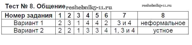 Решебник №2 / тест / тест №8. общение