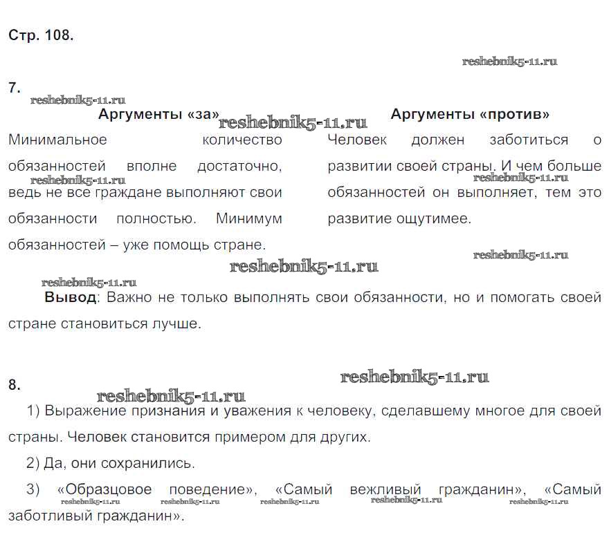 Готовая домашняя работа с ответами по Обществознанию за 6 класс Хромова Рабочая тетрадь Инновационная школа Русское слово 2015 ФГОС - Страницы 108