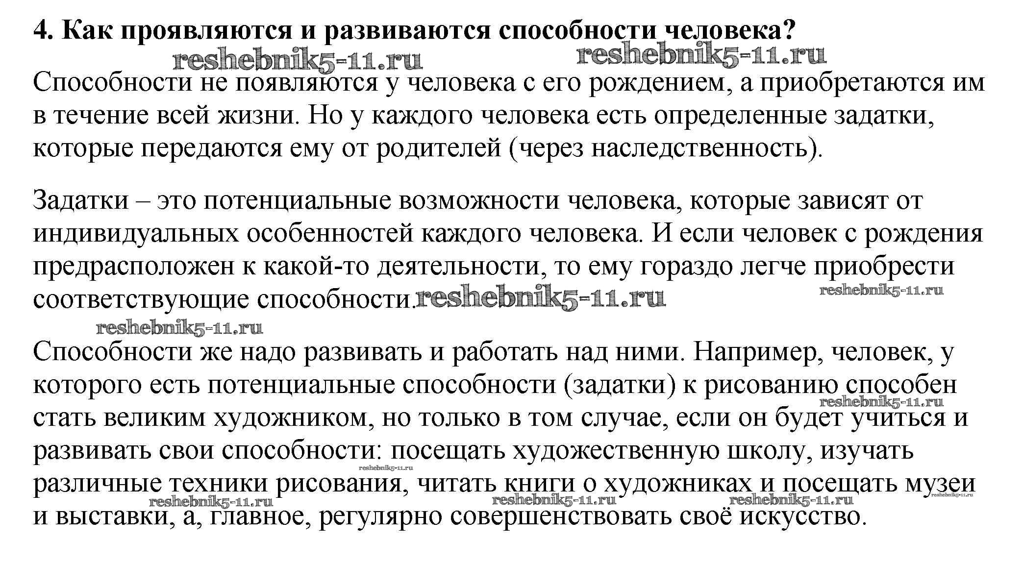 Готовая домашняя работа с ответами по Обществознанию за 6 класс Боголюбов, Виноградова, Городецкая, Иванова, Лискова, Матвеев, Рутковская Учебник Академический школьный учебник Просвещение 2016 ФГОС - Проверим себя 4