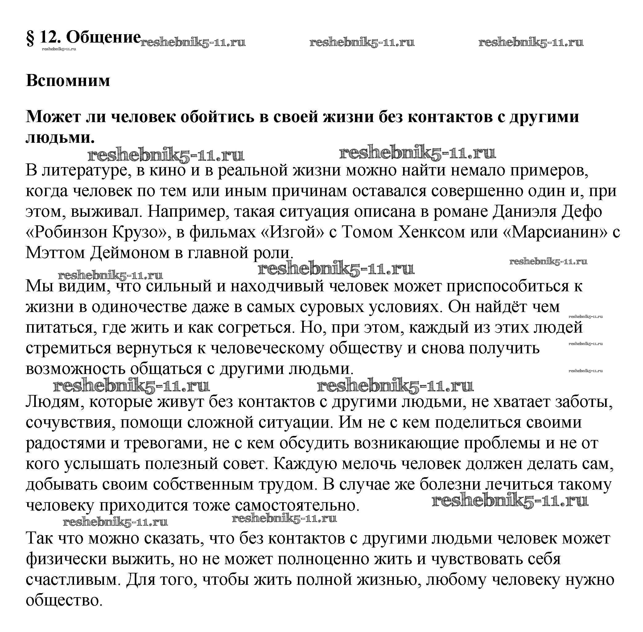 Готовая домашняя работа с ответами по Обществознанию за 6 класс Боголюбов, Виноградова, Городецкая, Иванова, Лискова, Матвеев, Рутковская Учебник Академический школьный учебник Просвещение 2016 ФГОС - Вспомним 1