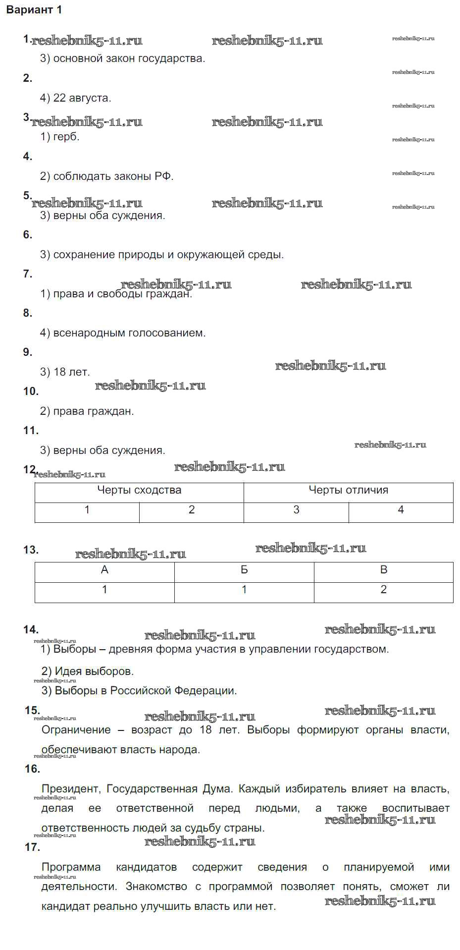 Готовая домашняя работа с ответами по Обществознанию за 5, 6 класс Лобанов Тематический контроль Национальное образование 2017 ФГОС - КР №3. Стартовая контрольная работа вариант-1