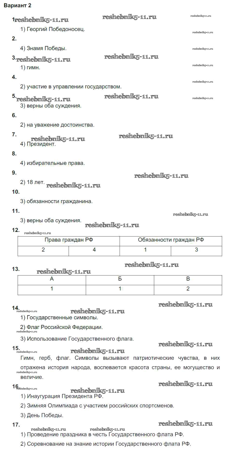 Готовая домашняя работа с ответами по Обществознанию за 5, 6 класс Лобанов Тематический контроль Национальное образование 2017 ФГОС - КР №3. Стартовая контрольная работа вариант-2