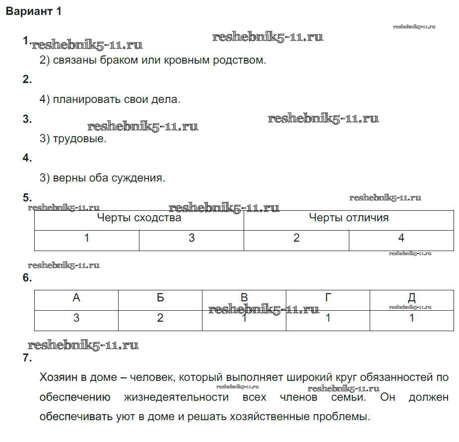 Решебник / самостоятельная работа / тема "Семья. Труд. Школа" / ср №1 / вариант-1