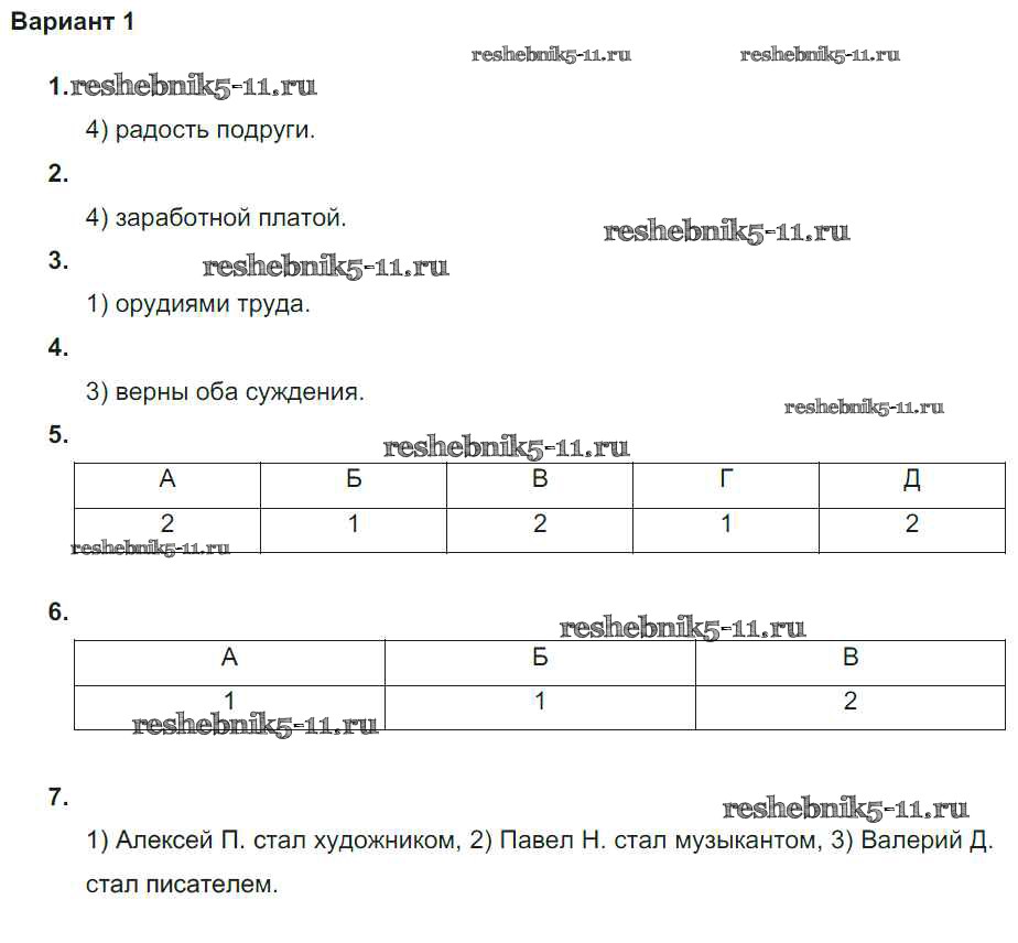 Решебник / самостоятельная работа / тема "Семья. Труд. Школа" / ср №3 / вариант-1