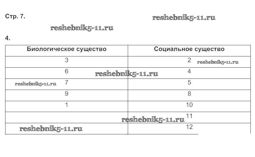 Готовая домашняя работа с ответами по Обществознанию за 6 класс Федорова Рабочая тетрадь Вертикаль Дрофа 2017 ФГОС - Глава-1. Человек в обществе стр. 7