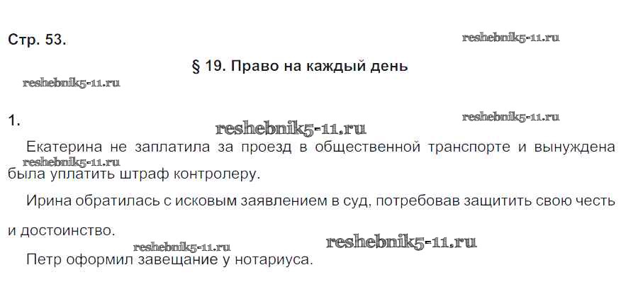 Готовая домашняя работа с ответами по Обществознанию за 6 класс Федорова Рабочая тетрадь Вертикаль Дрофа 2017 ФГОС - Глава-2. Гражданин и закон стр. 53
