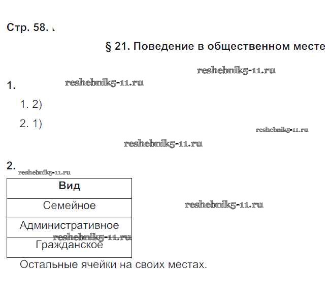Готовая домашняя работа с ответами по Обществознанию за 6 класс Федорова Рабочая тетрадь Вертикаль Дрофа 2017 ФГОС - Глава-2. Гражданин и закон стр. 58