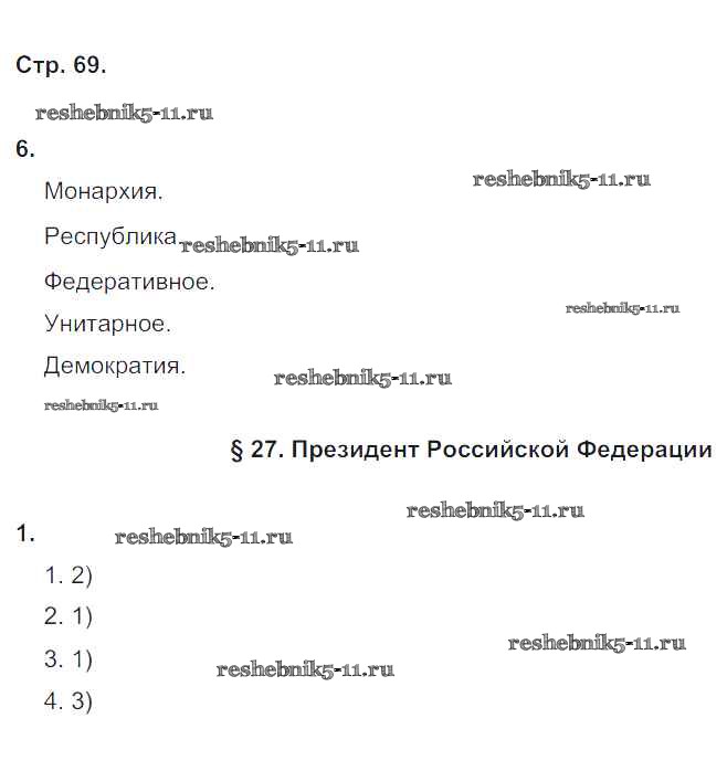 Готовая домашняя работа с ответами по Обществознанию за 6 класс Федорова Рабочая тетрадь Вертикаль Дрофа 2017 ФГОС - Глава-3. Государство и власть стр. 69