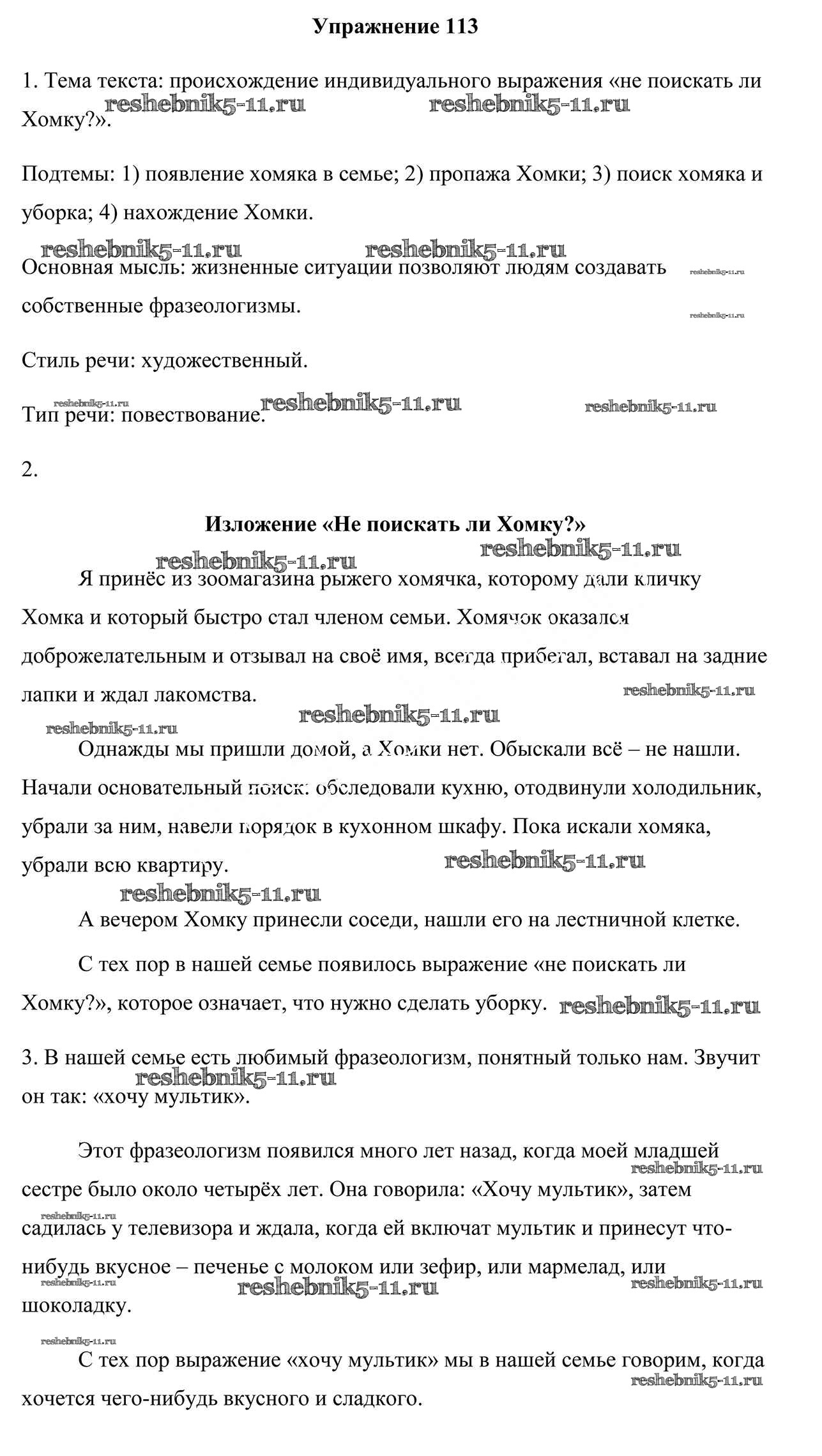 Готовая домашняя работа с ответами по Русскому языку за 6 класс Мурина, Литвинко, Николаенко Учебник Часть Национальный институт образования 2020 ФГОС - Упражнения 113