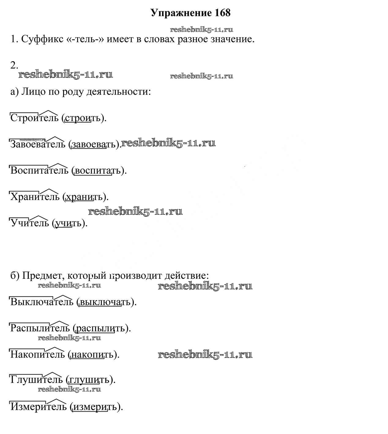 Готовая домашняя работа с ответами по Русскому языку за 6 класс Мурина, Литвинко, Николаенко Учебник Часть Национальный институт образования 2020 ФГОС - Упражнения 168