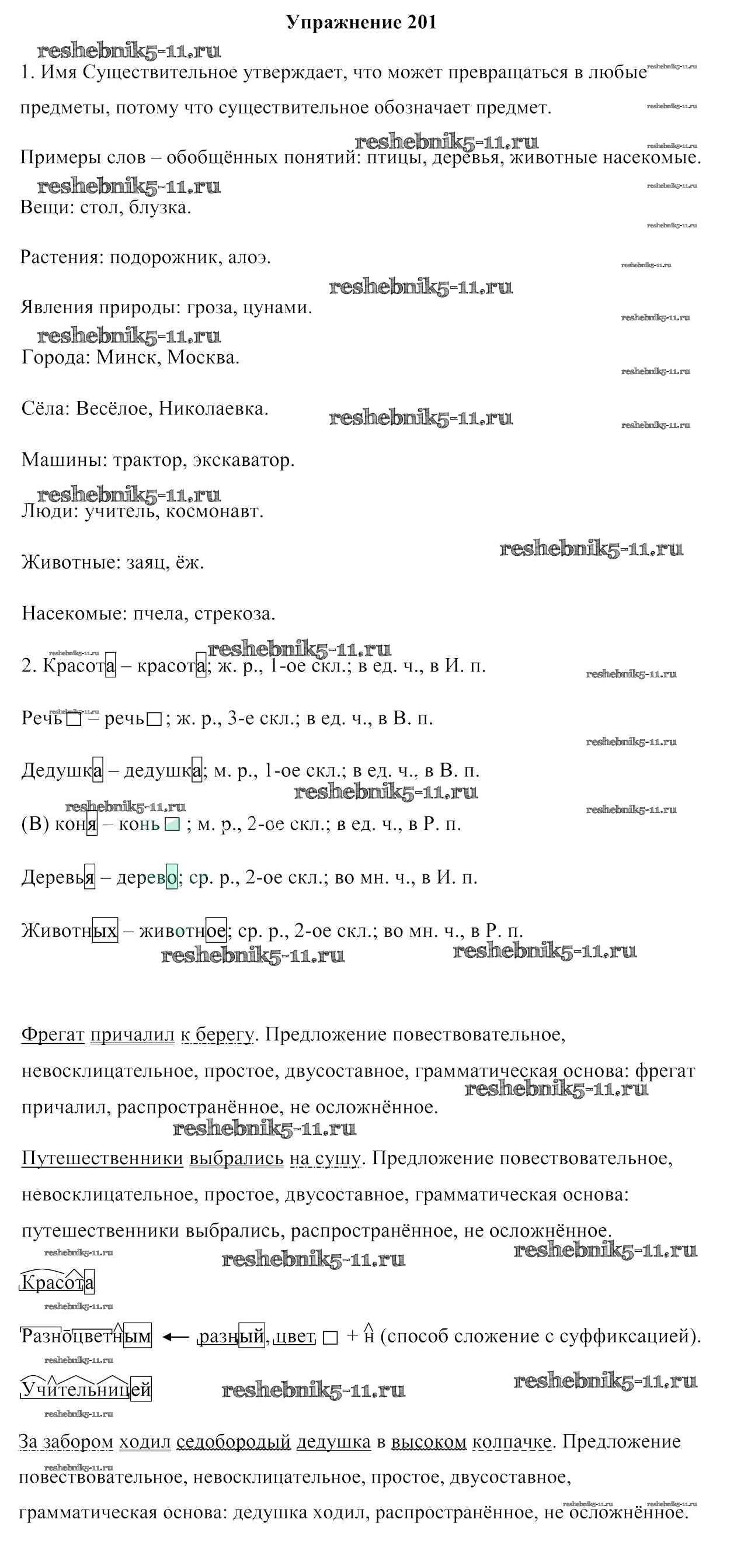 Готовая домашняя работа с ответами по Русскому языку за 6 класс Мурина, Литвинко, Николаенко Учебник Часть Национальный институт образования 2020 ФГОС - Упражнения 201