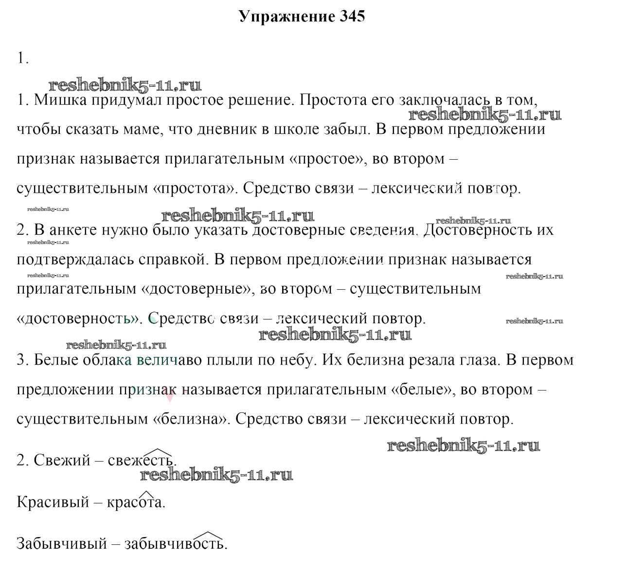 Готовая домашняя работа с ответами по Русскому языку за 6 класс Мурина, Литвинко, Николаенко Учебник Часть Национальный институт образования 2020 ФГОС - Упражнения 345