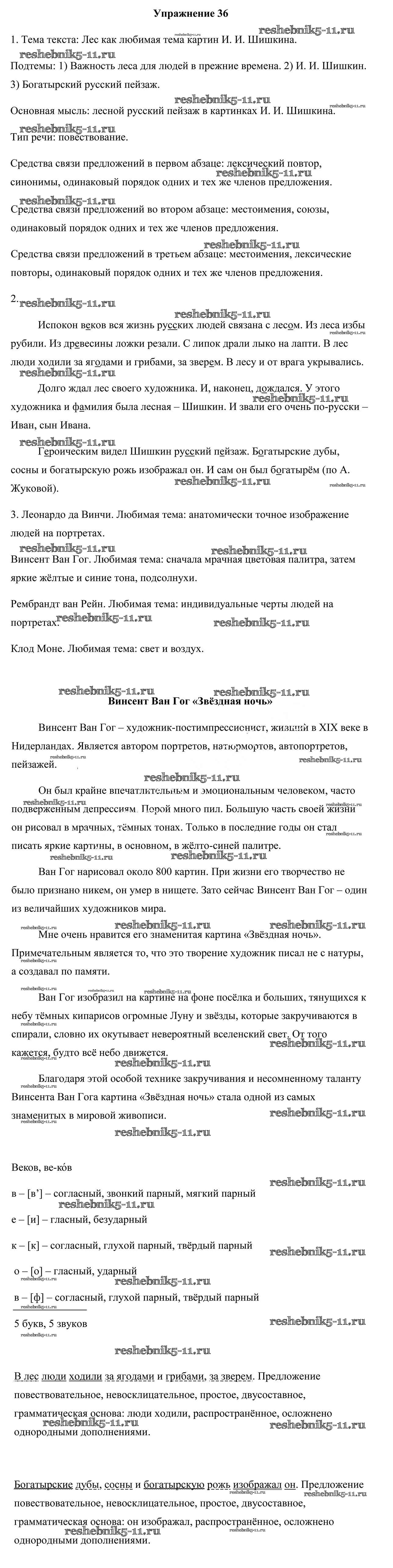 Готовая домашняя работа с ответами по Русскому языку за 6 класс Мурина, Литвинко, Николаенко Учебник Часть Национальный институт образования 2020 ФГОС - Упражнения 36