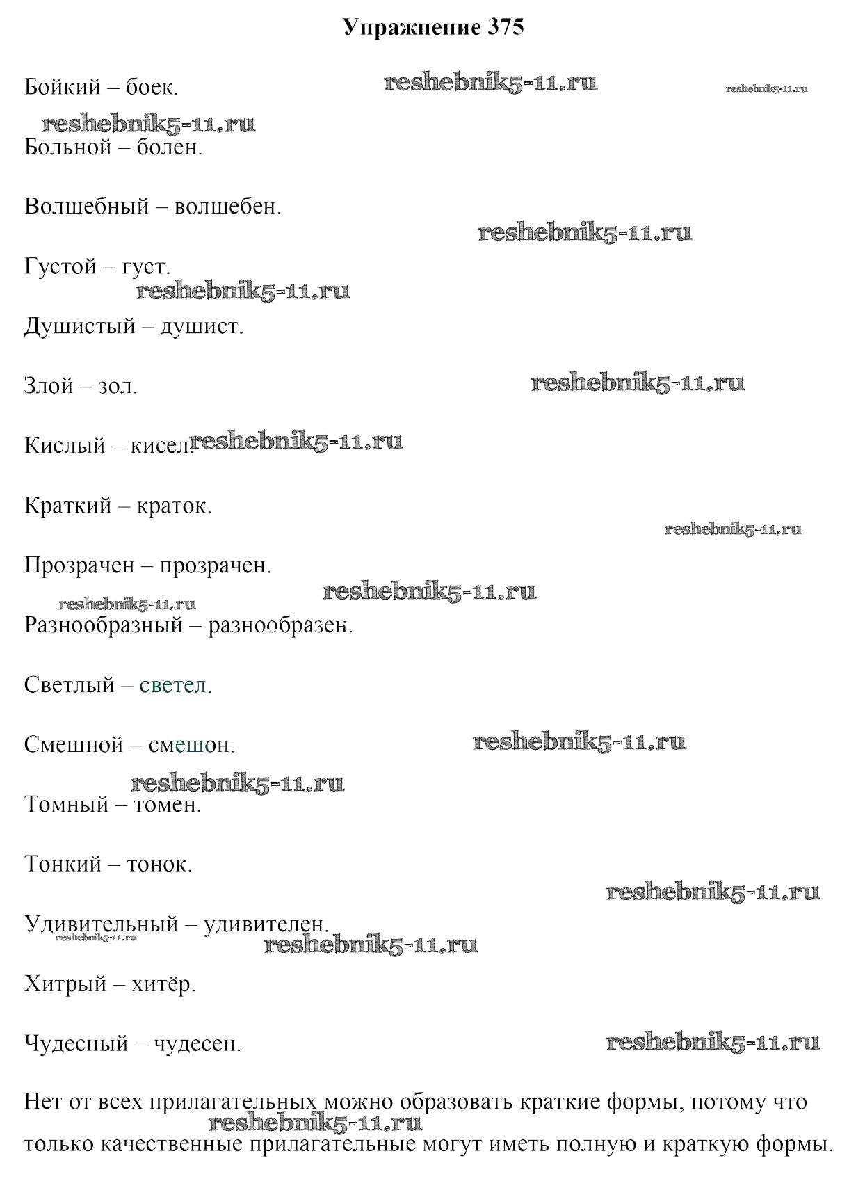 Готовая домашняя работа с ответами по Русскому языку за 6 класс Мурина, Литвинко, Николаенко Учебник Часть Национальный институт образования 2020 ФГОС - Упражнения 375
