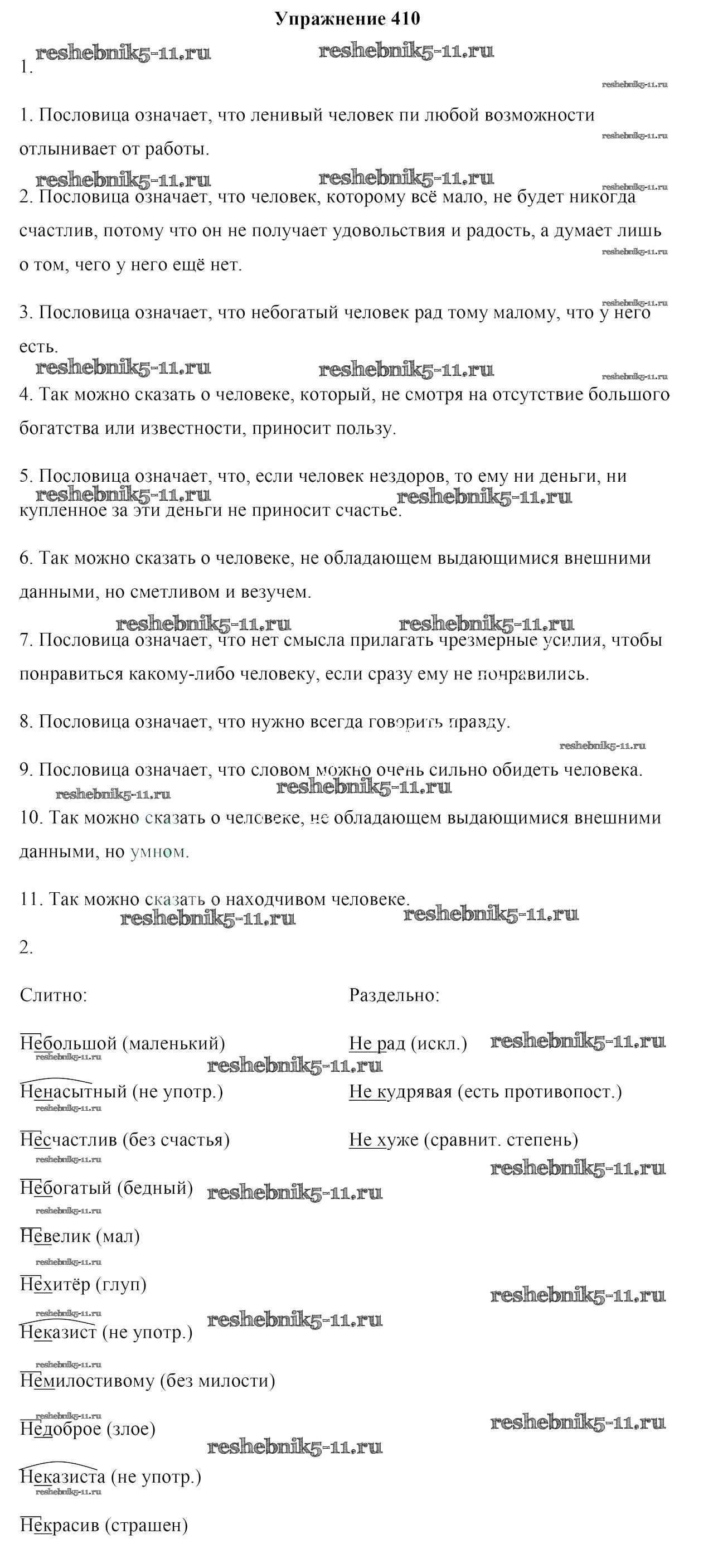 Готовая домашняя работа с ответами по Русскому языку за 6 класс Мурина, Литвинко, Николаенко Учебник Часть Национальный институт образования 2020 ФГОС - Упражнения 410