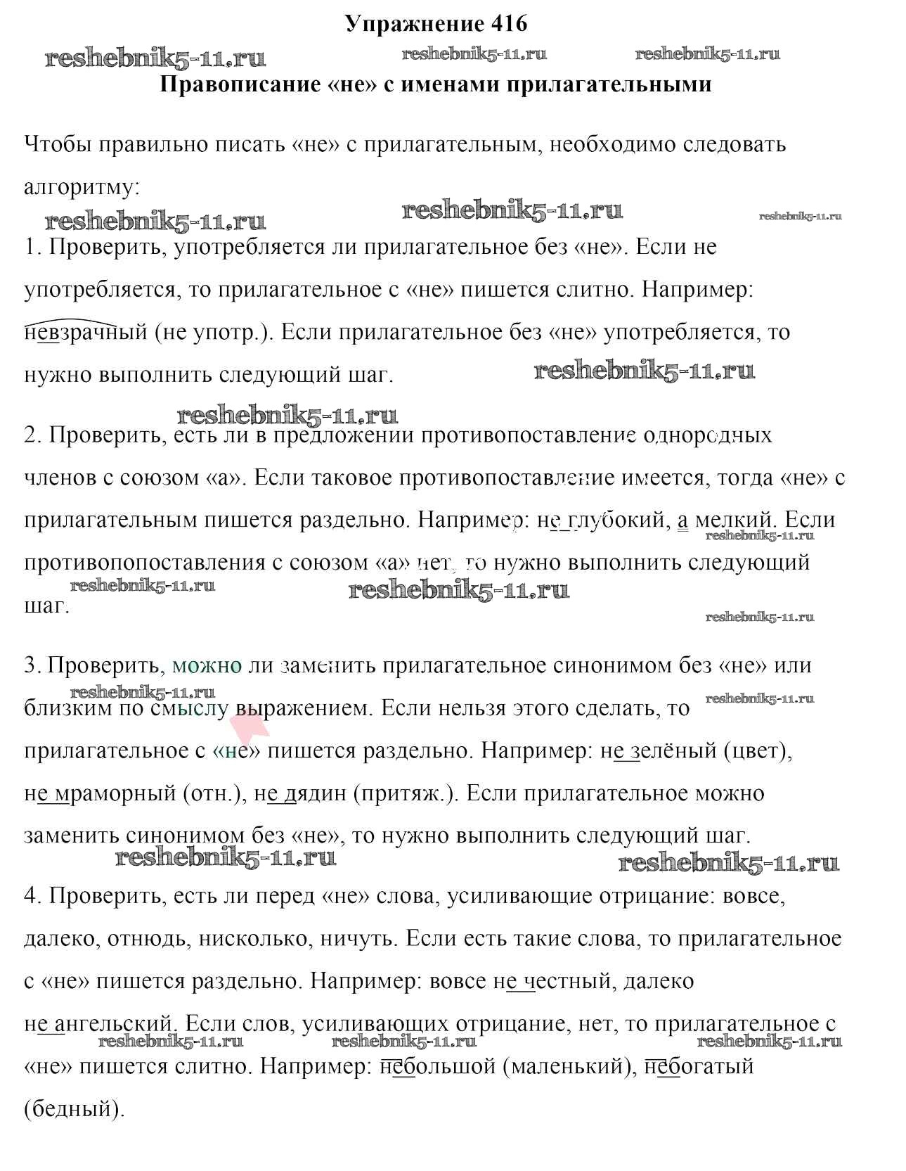 Готовая домашняя работа с ответами по Русскому языку за 6 класс Мурина, Литвинко, Николаенко Учебник Часть Национальный институт образования 2020 ФГОС - Упражнения 416