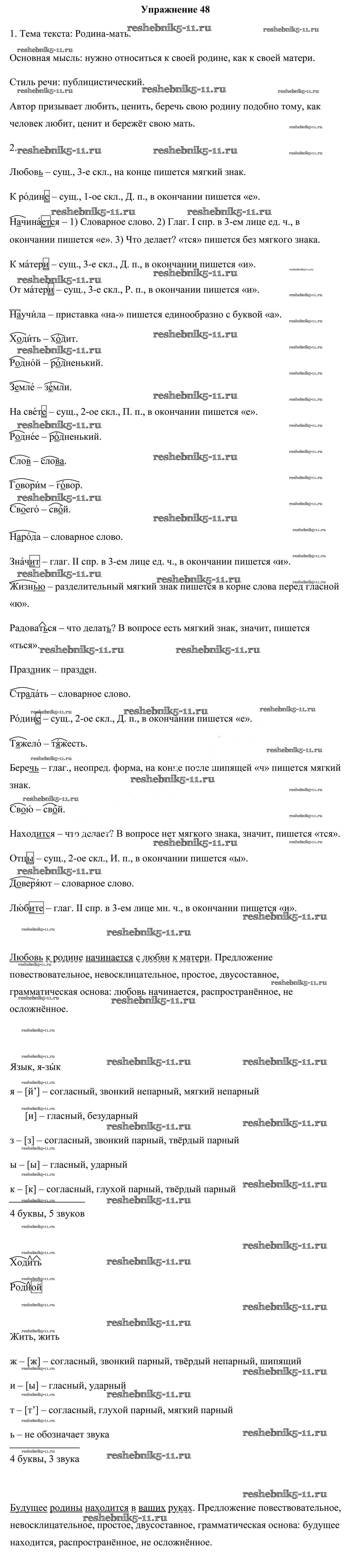 Готовая домашняя работа с ответами по Русскому языку за 6 класс Мурина, Литвинко, Николаенко Учебник Часть Национальный институт образования 2020 ФГОС - Упражнения 48