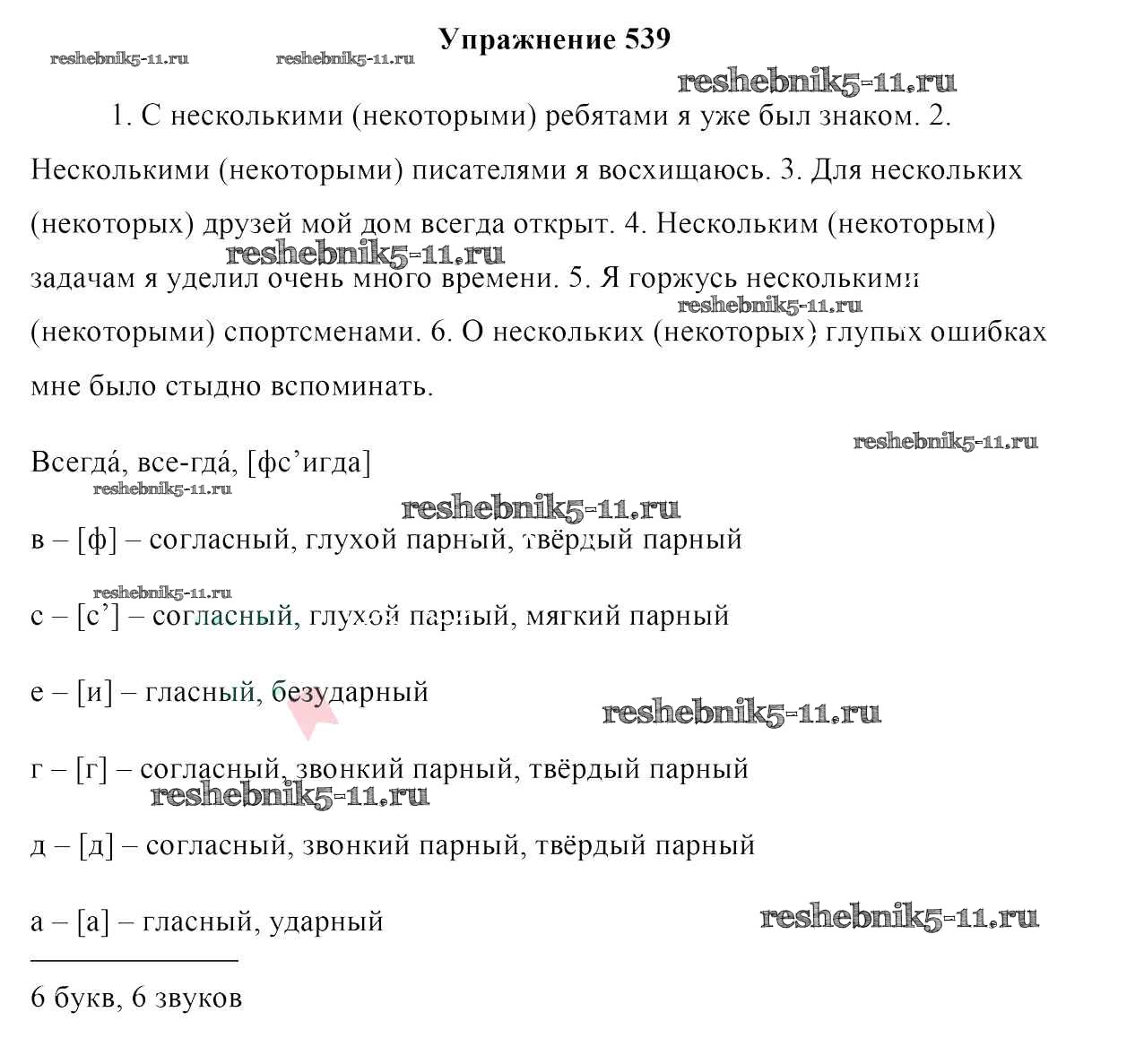 Готовая домашняя работа с ответами по Русскому языку за 6 класс Мурина, Литвинко, Николаенко Учебник Часть Национальный институт образования 2020 ФГОС - Упражнения 539