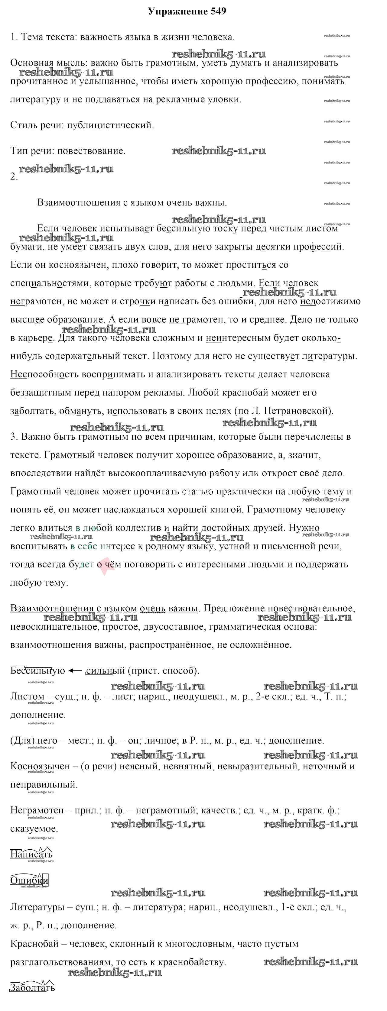 Готовая домашняя работа с ответами по Русскому языку за 6 класс Мурина, Литвинко, Николаенко Учебник Часть Национальный институт образования 2020 ФГОС - Упражнения 549