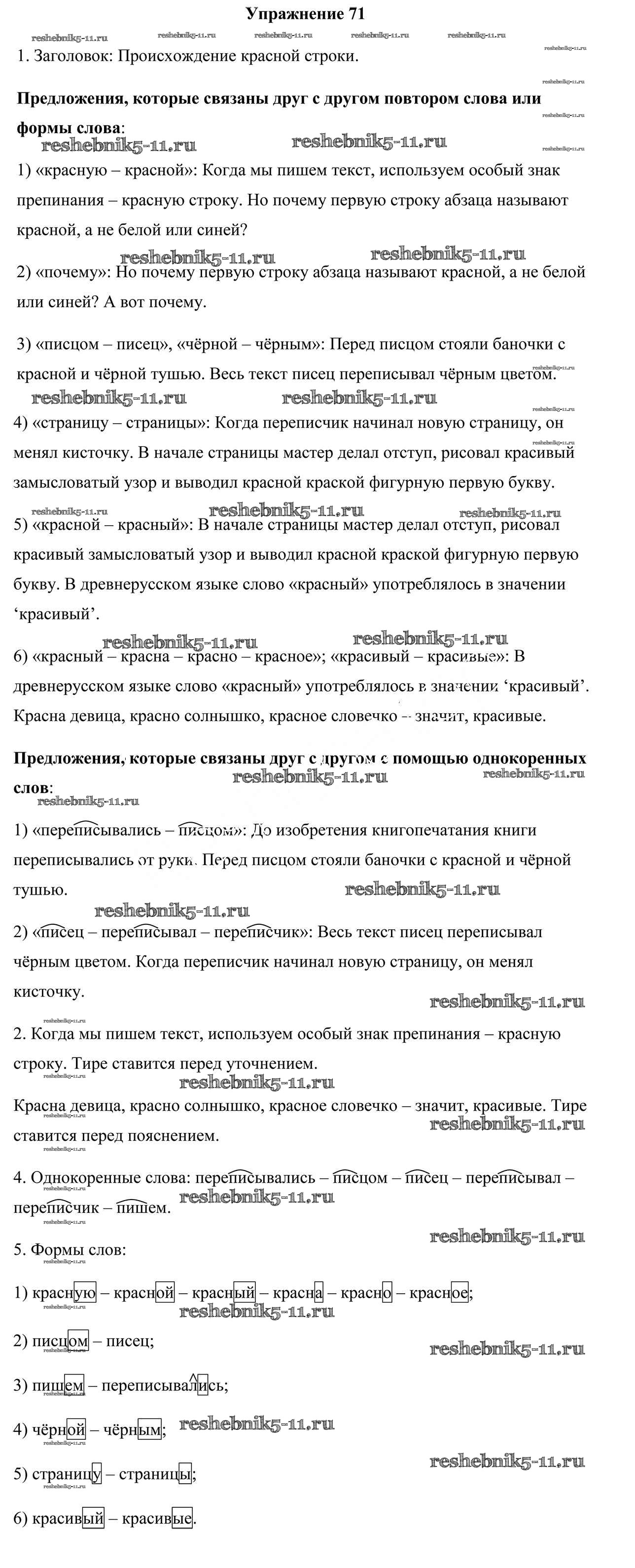 Готовая домашняя работа с ответами по Русскому языку за 6 класс Мурина, Литвинко, Николаенко Учебник Часть Национальный институт образования 2020 ФГОС - Упражнения 71