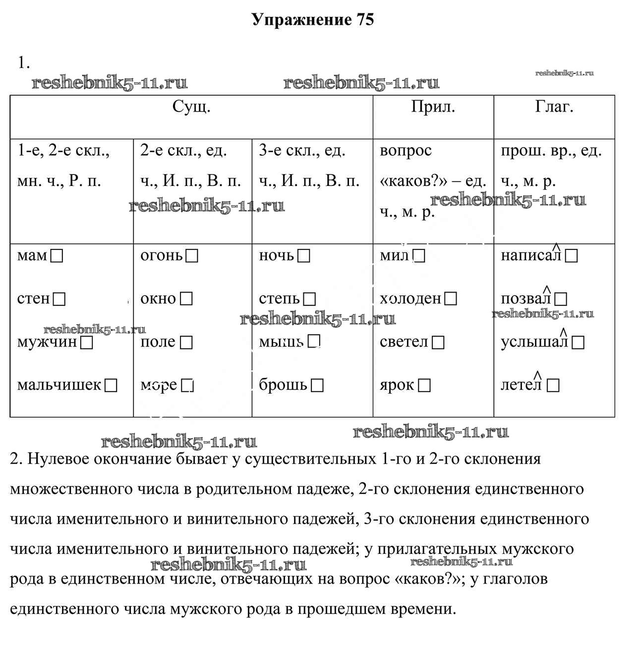 Готовая домашняя работа с ответами по Русскому языку за 6 класс Мурина, Литвинко, Николаенко Учебник Часть Национальный институт образования 2020 ФГОС - Упражнения 75