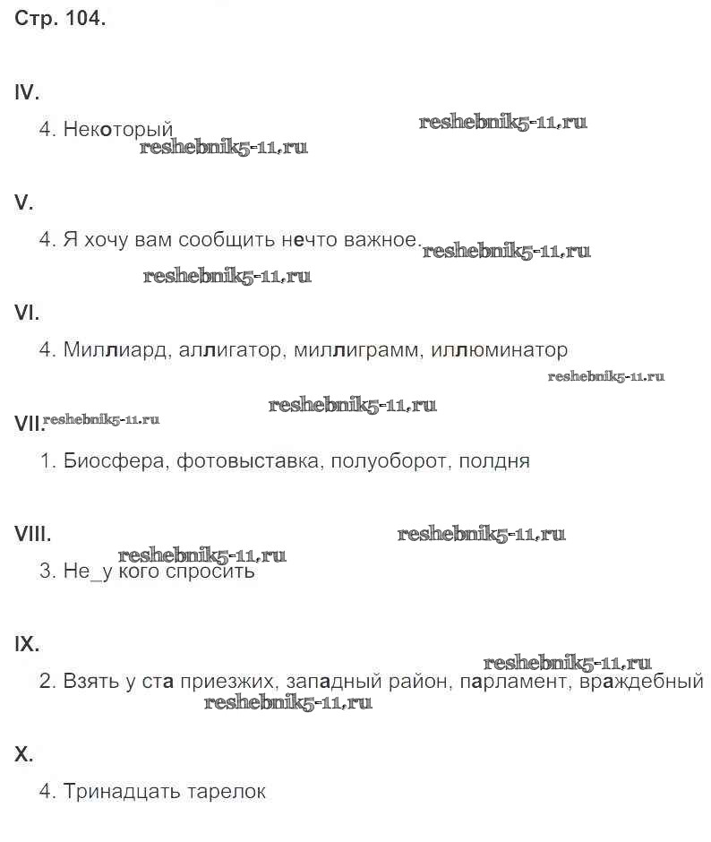 Готовая домашняя работа с ответами по Русскому языку за 6 класс Ларионова Рабочая тетрадь Вертикаль Дрофа 2014 ФГОС - Страницы 104