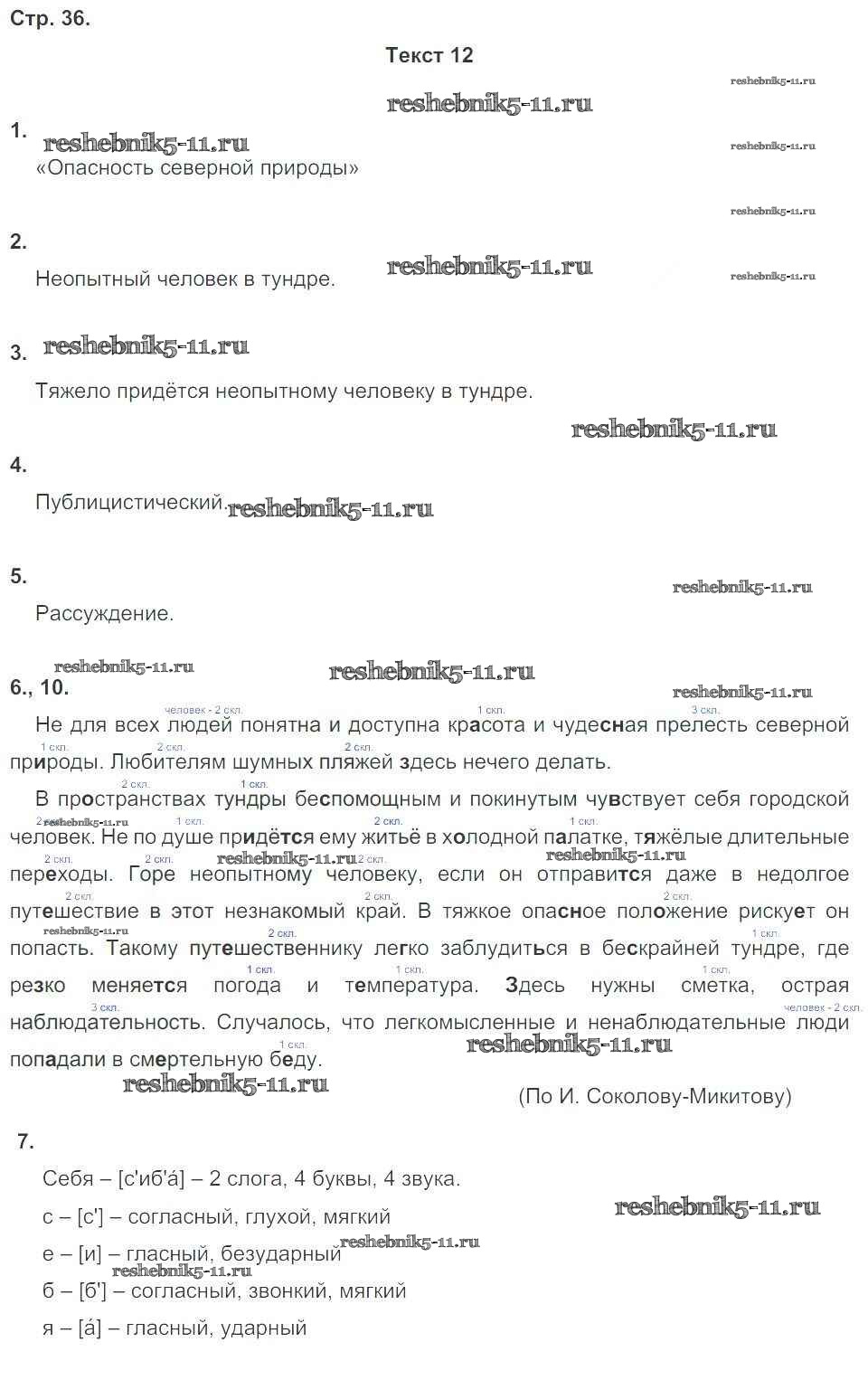 Готовая домашняя работа с ответами по Русскому языку за 6 класс Малюшкин Комплексный анализ текста (Рабочая тетрадь) Сфера 2014 ФГОС - Страницы 36