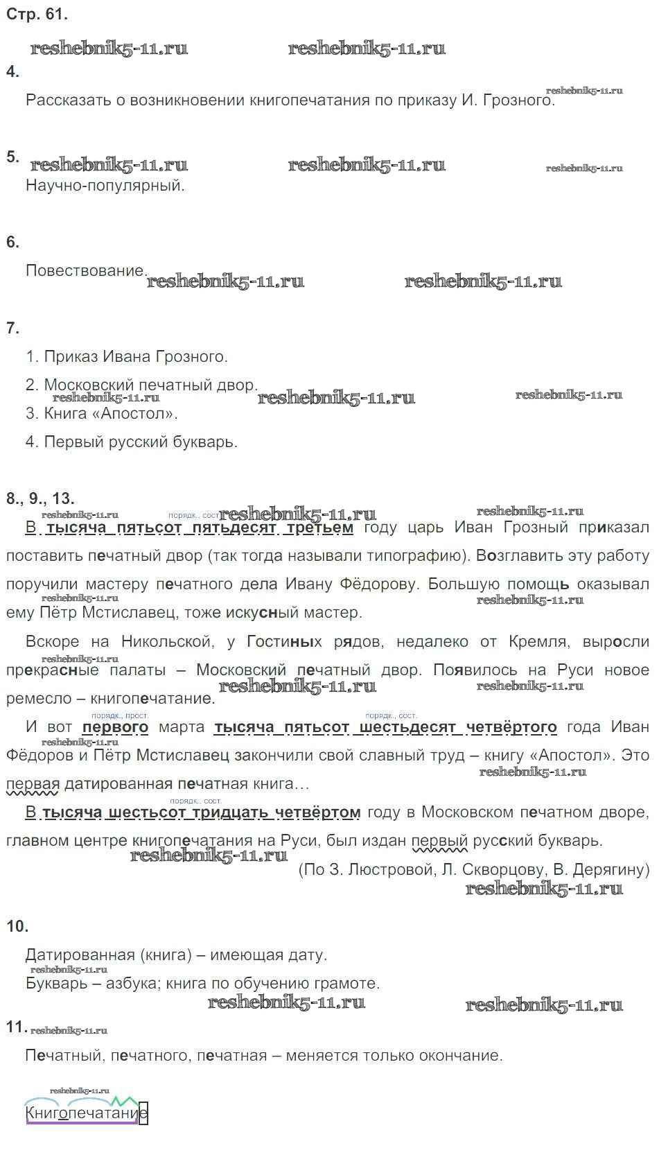 Готовая домашняя работа с ответами по Русскому языку за 6 класс Малюшкин Комплексный анализ текста (Рабочая тетрадь) Сфера 2014 ФГОС - Страницы 61