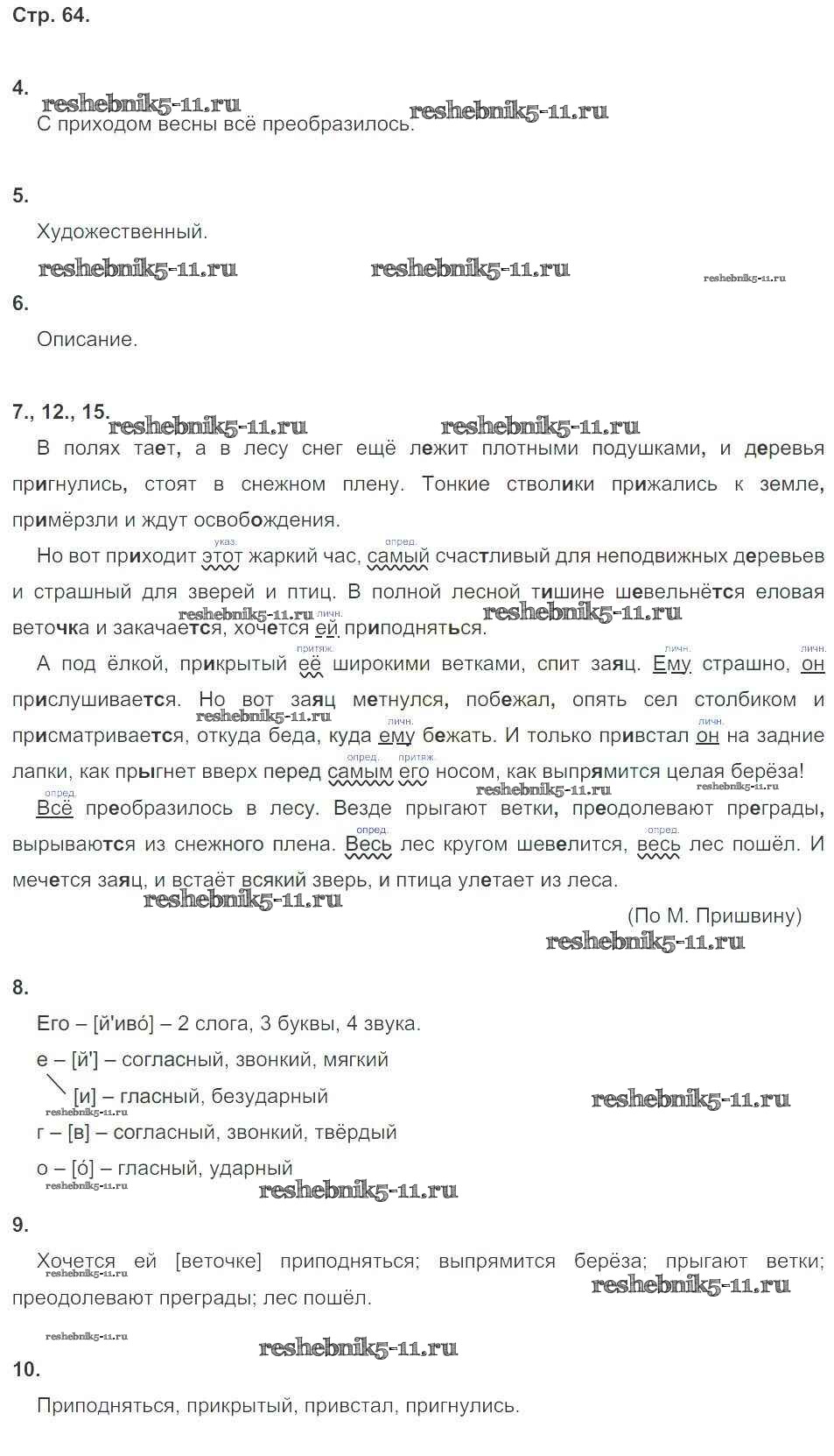 Готовая домашняя работа с ответами по Русскому языку за 6 класс Малюшкин Комплексный анализ текста (Рабочая тетрадь) Сфера 2014 ФГОС - Страницы 64