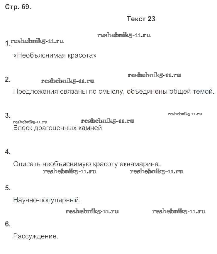 Готовая домашняя работа с ответами по Русскому языку за 6 класс Малюшкин Комплексный анализ текста (Рабочая тетрадь) Сфера 2014 ФГОС - Страницы 69