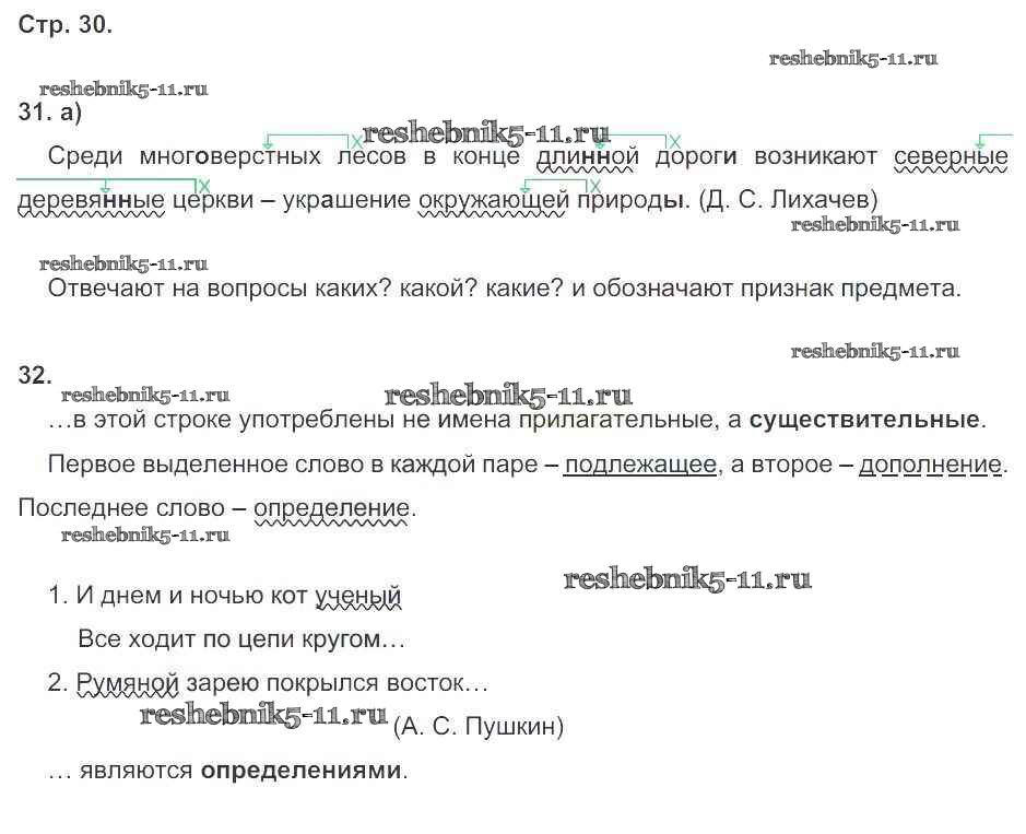 Готовая домашняя работа с ответами по Русскому языку за 6 класс Тростенцова, Дейкина, Невская Рабочая тетрадь УМК Часть 1, 2 Экзамен 2018 ФГОС - Часть 1. Страницы 30