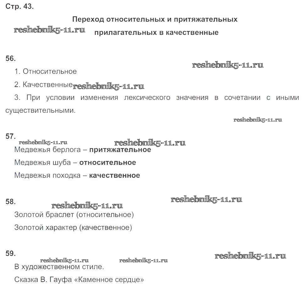Готовая домашняя работа с ответами по Русскому языку за 6 класс Тростенцова, Дейкина, Невская Рабочая тетрадь УМК Часть 1, 2 Экзамен 2018 ФГОС - Часть 1. Страницы 43