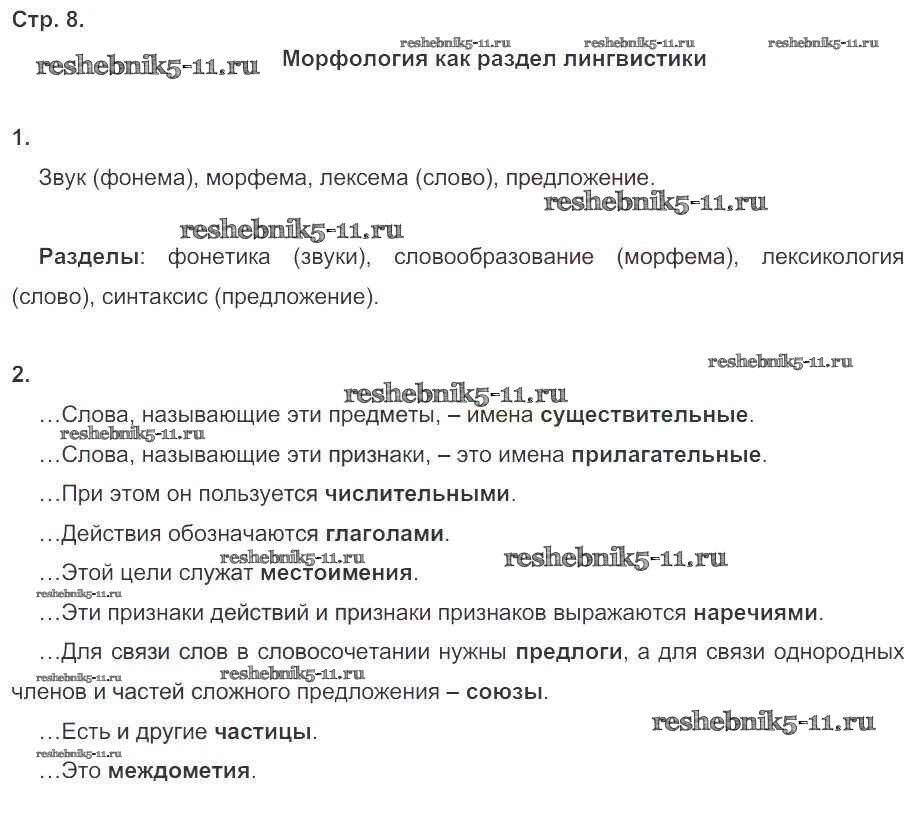 Готовая домашняя работа с ответами по Русскому языку за 6 класс Тростенцова, Дейкина, Невская Рабочая тетрадь УМК Часть 1, 2 Экзамен 2018 ФГОС - Часть 1. Страницы 8