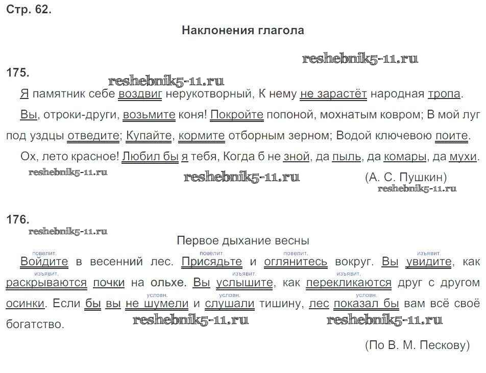 Готовая домашняя работа с ответами по Русскому языку за 6 класс Тростенцова, Дейкина, Невская Рабочая тетрадь УМК Часть 1, 2 Экзамен 2018 ФГОС - Часть 2. Страницы 62