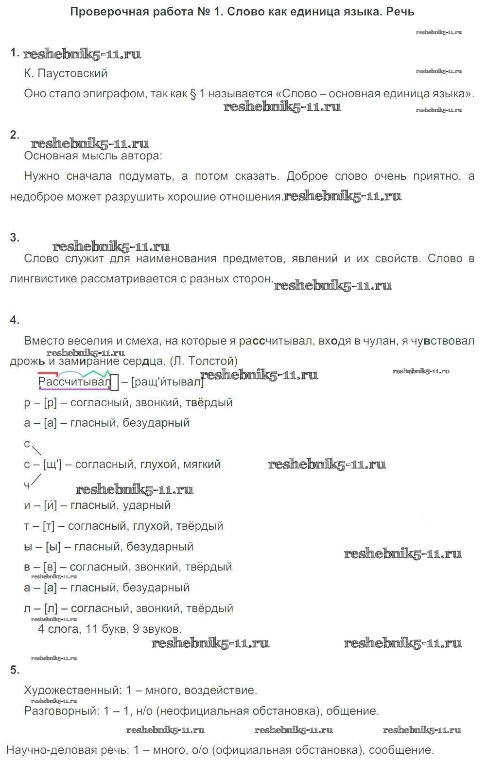 Готовая домашняя работа с ответами по Русскому языку за 6 класс Львов Тетрадь для оценки качества знаний Вертикаль Дрофа 2015 ФГОС - Проверочные работы ПР №1. Слово как единица языка. Речь