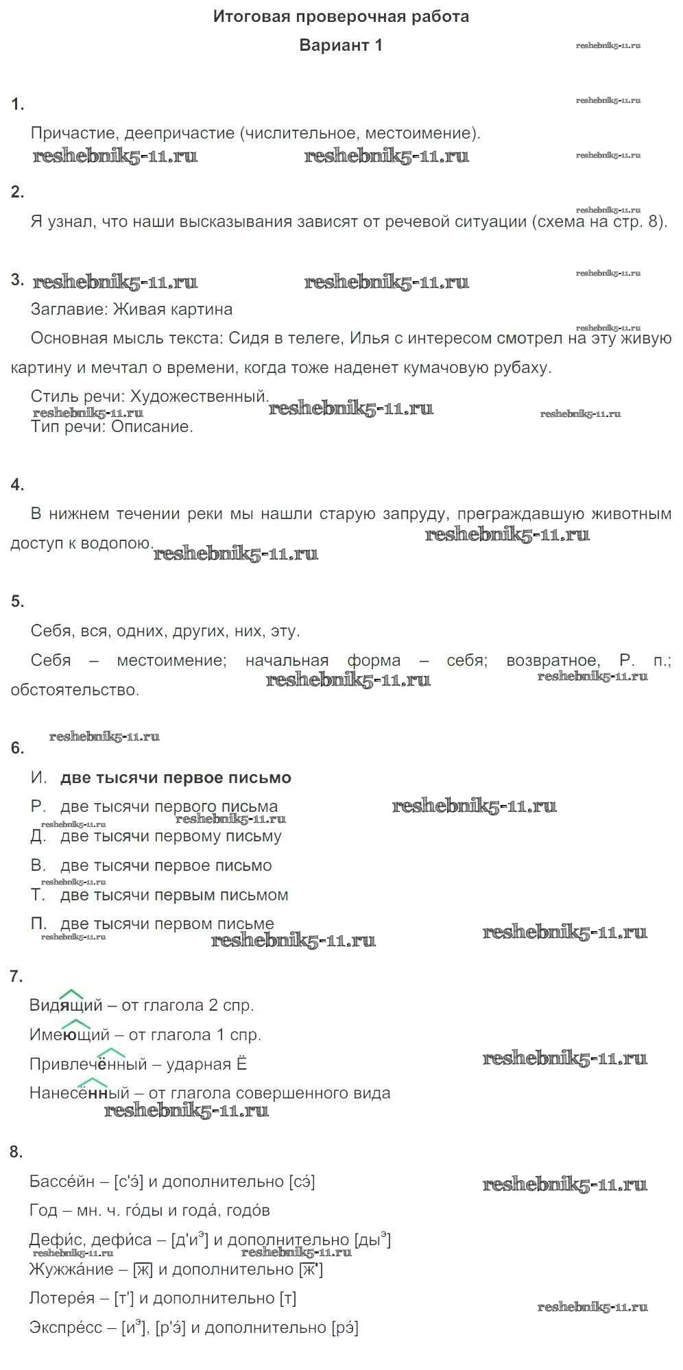 Готовая домашняя работа с ответами по Русскому языку за 6 класс Львов Тетрадь для оценки качества знаний Вертикаль Дрофа 2015 ФГОС - Итоговая проверочная работа Вариант-1