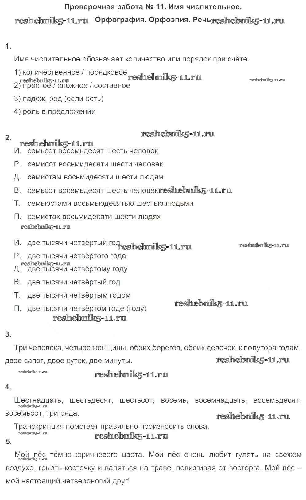 Готовая домашняя работа с ответами по Русскому языку за 6 класс Львов Тетрадь для оценки качества знаний Вертикаль Дрофа 2015 ФГОС - Проверочные работы ПР №11. Имя числительное. Орфография. Орфоэпия. Речь