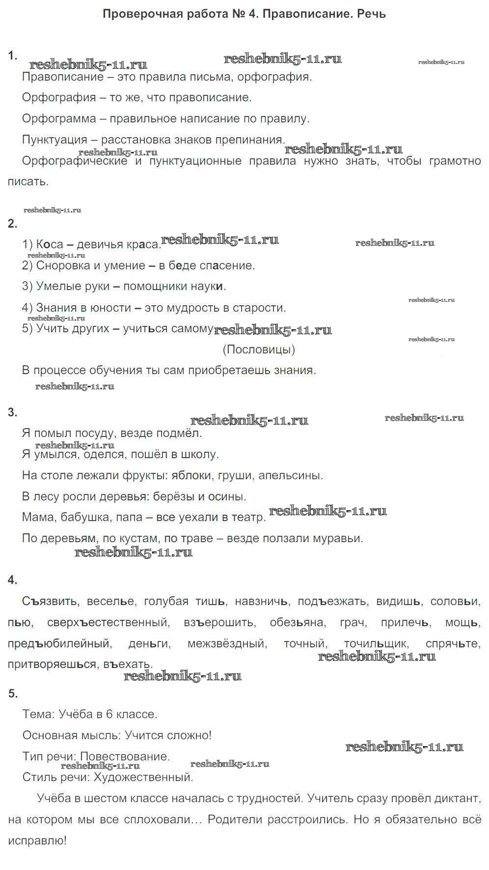 Готовая домашняя работа с ответами по Русскому языку за 6 класс Львов Тетрадь для оценки качества знаний Вертикаль Дрофа 2015 ФГОС - Проверочные работы ПР №4. Правописание. Речь