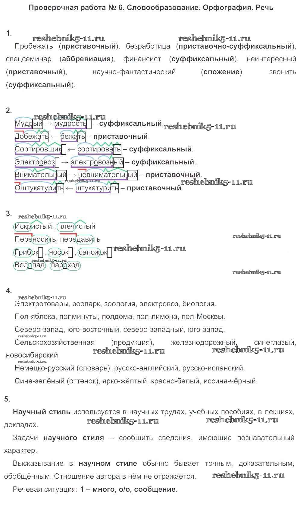 Готовая домашняя работа с ответами по Русскому языку за 6 класс Львов Тетрадь для оценки качества знаний Вертикаль Дрофа 2015 ФГОС - Проверочные работы ПР №6. Слообразование. Орфография. Речь