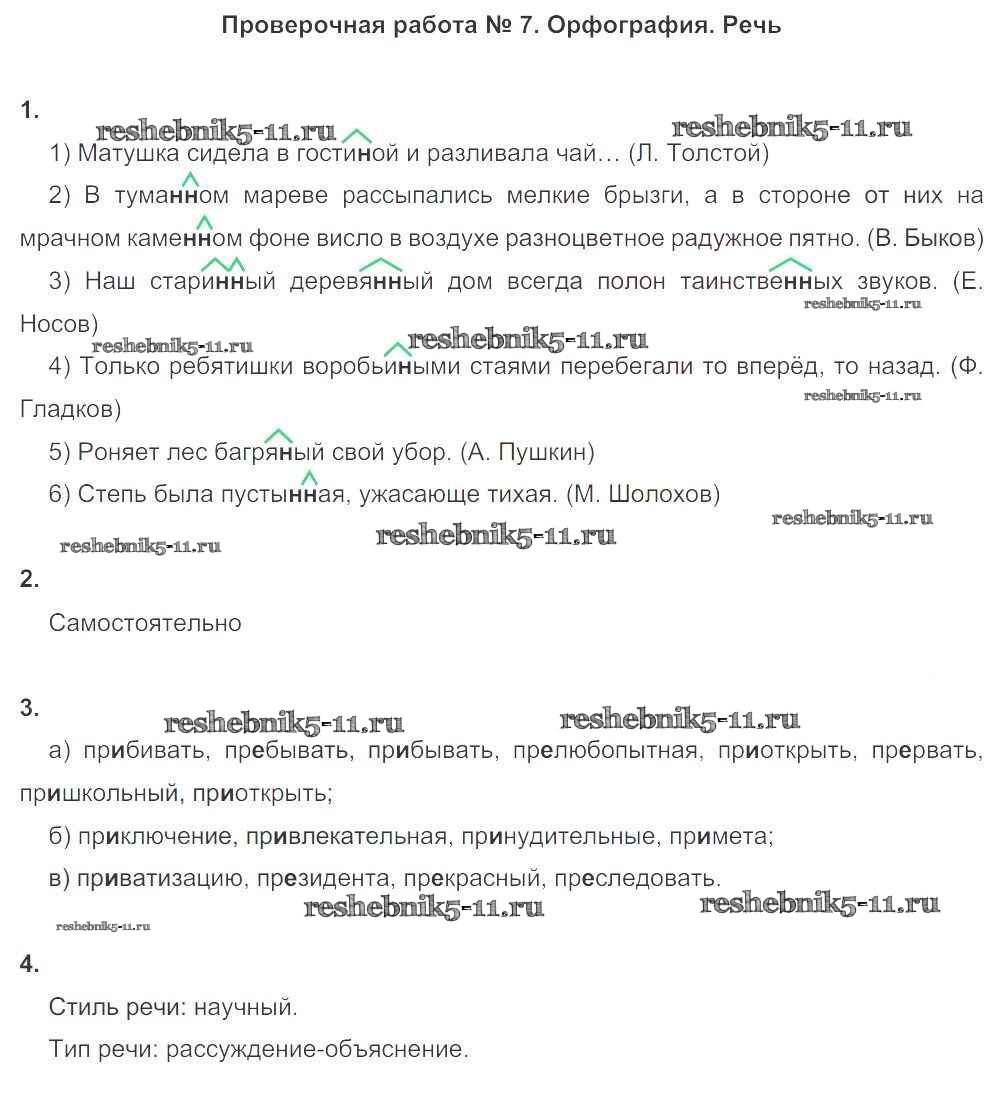 Готовая домашняя работа с ответами по Русскому языку за 6 класс Львов Тетрадь для оценки качества знаний Вертикаль Дрофа 2015 ФГОС - Проверочные работы ПР №7. Орфография. Речь