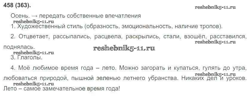 Готовая домашняя работа с ответами по Русскому языку за 6 класс Рыбченкова, Александрова, Загоровская, Нарушевич Учебник Часть 1, 2 Просвещение 2016 ФГОС - Новое издание. Номера 458