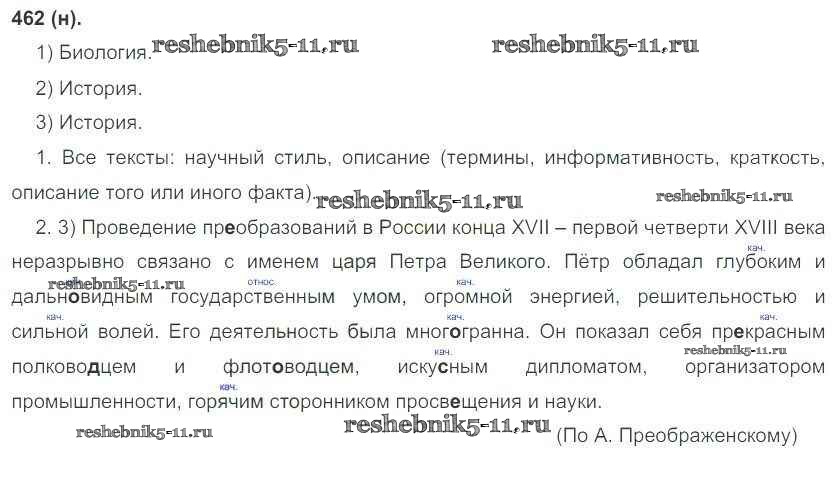 Готовая домашняя работа с ответами по Русскому языку за 6 класс Рыбченкова, Александрова, Загоровская, Нарушевич Учебник Часть 1, 2 Просвещение 2016 ФГОС - Новое издание. Номера 462
