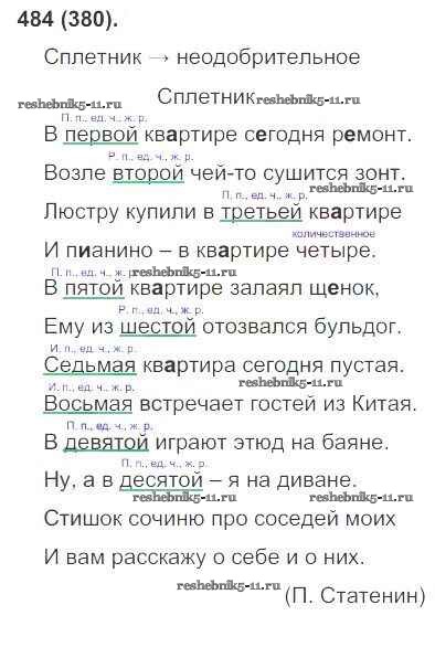 Русский язык за 6 класс Рыбченкова Учебник Просвещение новое издание. номер 484