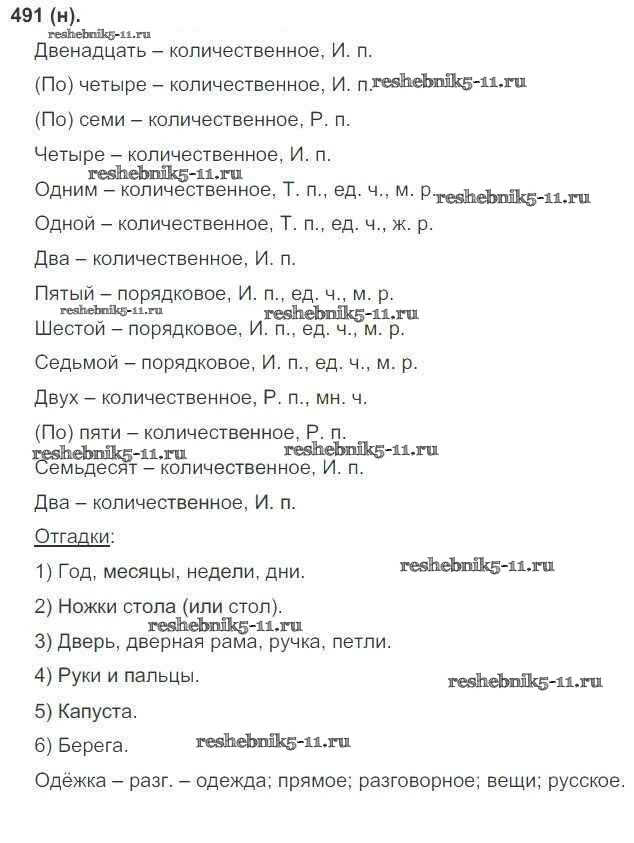 Готовая домашняя работа с ответами по Русскому языку за 6 класс Рыбченкова, Александрова, Загоровская, Нарушевич Учебник Часть 1, 2 Просвещение 2016 ФГОС - Новое издание. Номера 491