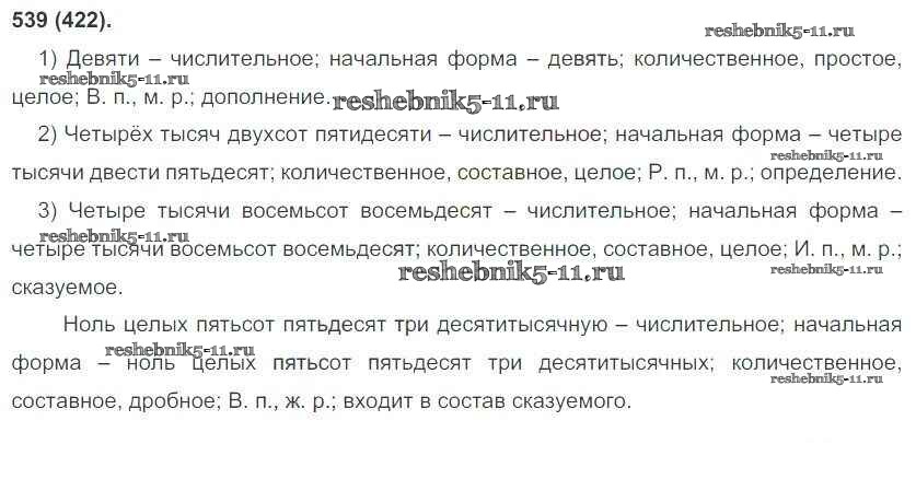 Готовая домашняя работа с ответами по Русскому языку за 6 класс Рыбченкова, Александрова, Загоровская, Нарушевич Учебник Часть 1, 2 Просвещение 2016 ФГОС - Новое издание. Номера 539
