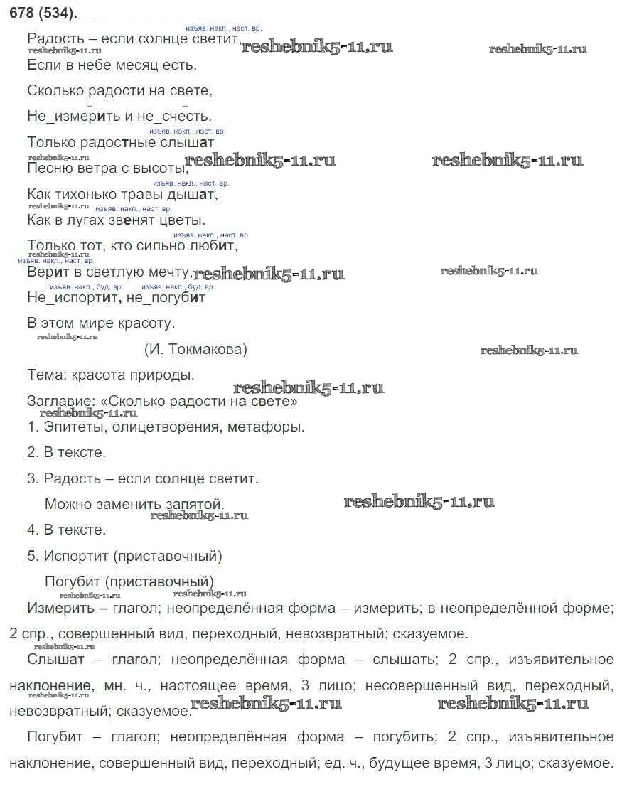 Готовая домашняя работа с ответами по Русскому языку за 6 класс Рыбченкова, Александрова, Загоровская, Нарушевич Учебник Часть 1, 2 Просвещение 2016 ФГОС - Старое издание. Номера 534